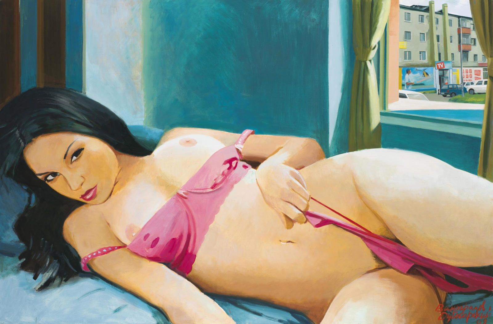Виноградов и Дубосарский строят русский Эдем — новый рай, неотъемлемыми элементами которого становятся роскошные девушки, вечный праздник и сказочное удовольствие от соединения с окружающим миром. Однако в представленной работе «Я была игрушкой для богатых» 2009 года художники совершают отход от клише в сторону реального мира и вместо характерного гламурного пейзажа изображают обыденный вид из окна — с многоквартирным домом и дворовым магазинчиком. Название вероятно отсылает к произведению «Я была игрушкой богача» 1947 года авторства одного из первых поп-артистов, Эдуардо Паолоцци. Виноградов и Дубосарский изображают фигуру девушки в узнаваемой стилистике, отсылающей к манере написания человека соцреалистами: образ исполнен молодости и красоты. Но, кроме того, он пропитан и телесностью, выполнен по-современному экспрессивно, размашистыми мазками, что заявляет о внутренней свободе и способности бросить вызов устоявшейся художественной системе. V