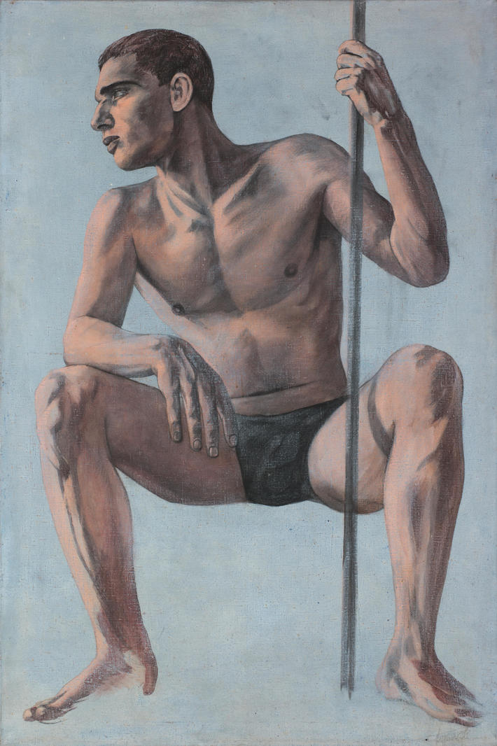 Известный ленинградский денди и эстет конца ХХ столетия, барабанщик группы «Кино» Георгий Гурьянов после гибели Виктора Цоя и распада группы сосредоточился на своем художественном творчестве, став одним из самых успешных живописцев постсоветской эпохи. При этом именно он ввел моду на образы соцреализма среди участников объединения «Новые художники», к которой принадлежал с середины 1980-х. Эти образы прекрасно вписались и в общую эстетику «Новой Академии Изящных Искусств», основанной Тимуром Новиковым в 1989 и призванной сохранять классические традиции в современном искусстве. В 1993 Гурьянов стал почетным профессором Новой Академии. К тому времени у него уже сложился собственный стиль, определяемый искусствоведами как «героико-гомоэротический неоакадемизм» (Е.Андреева). Его герои, изображаемые на огромных холстах (за что Гурьянова в шутку прозвали «русским Веласкесом») атлетичны, молоды и красивы. Источником вдохновения для художника служила античная и ренессансная скульптура, советская фотография и живопись 1920–30-х, а также кинофильмы — от «Строгого юноши» А. Роома до работ Фассбиндера и Висконти. Круг его персонажей — летчики, моряки, спортсмены. «Видеть перед собой сильное, загорелое, освещенное солнечными лучами и одутое морскими ветрами тело гораздо разумнее, чем уставиться с умным видом в черный квадрат», — отмечал он.