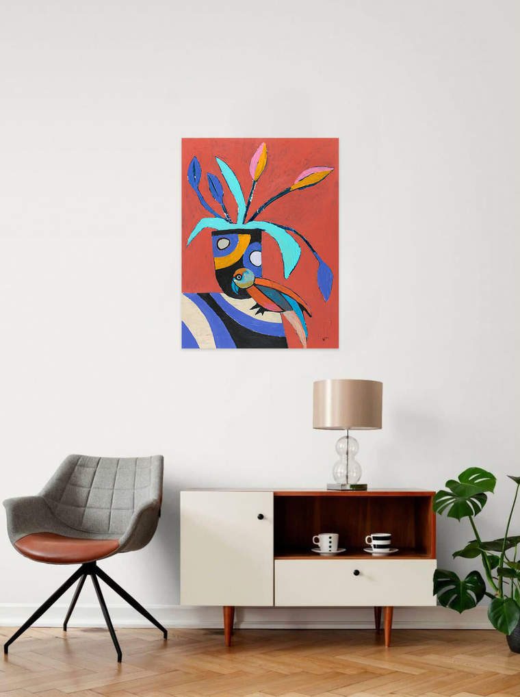 «Работа продолжает серию, все произведения которой созданы в духе неоэкспрессионизма с использованием насыщенных ярких цветов. В характерной манере сочетаются синтетический реализм, фрагментированная фигуративность и абстракция. Картина создана интуитивно — через личные впечатления, эмоциональные состояния и воспоминания, которые сублимируются в спонтанные и метафоричные образы. Здесь сочетаются реальное и абстрактное, а подчеркнутая декоративность становится пространством символов».