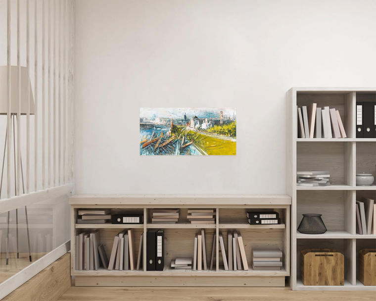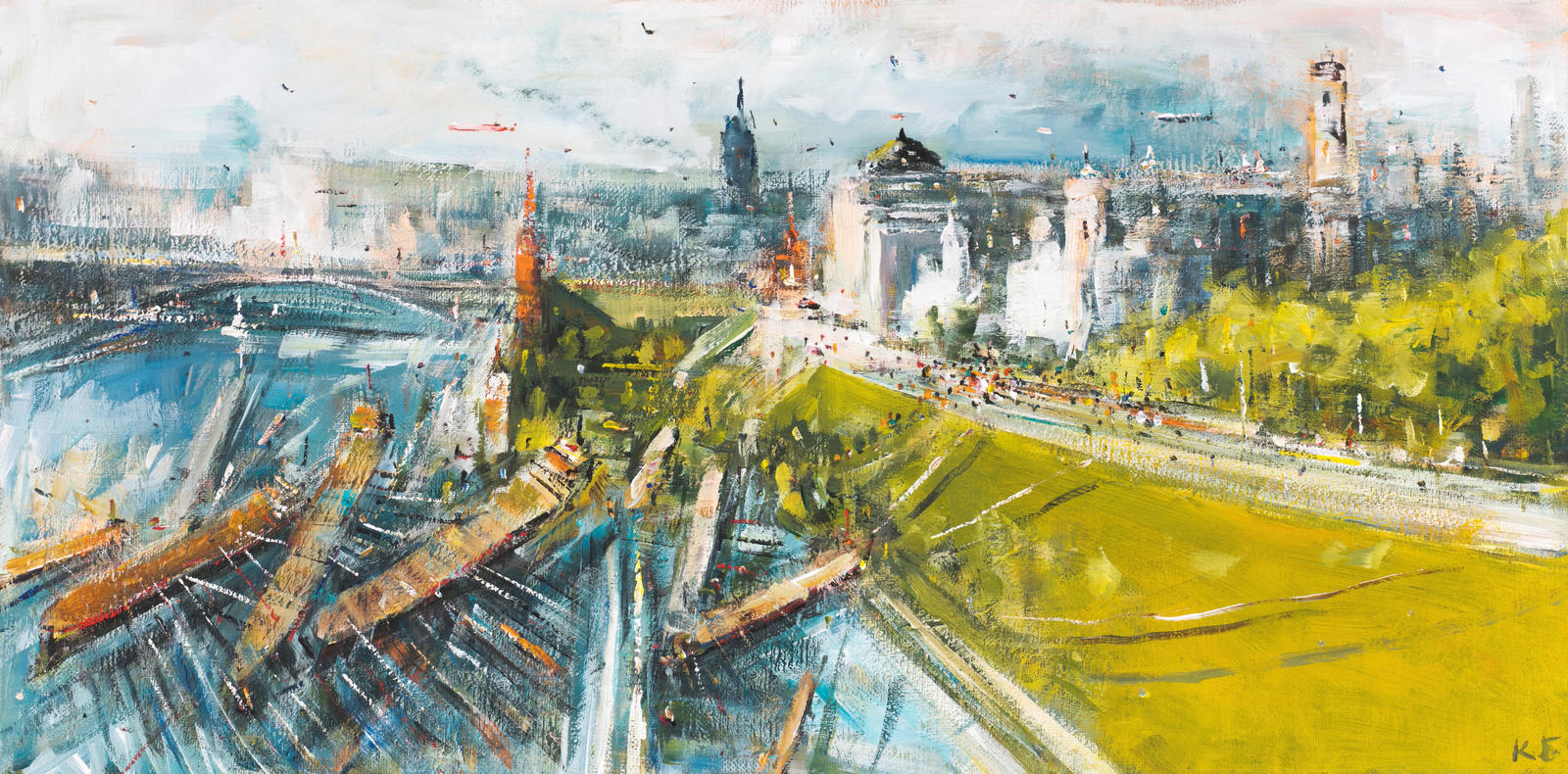 В представленной работе динамика усиливается за счет того, что Батынков изображает обычно спокойную Москву-реку, вздымающуюся волнами и сносящую на берег массивные баржи. Благодаря беглому и свободному мазку, формирующему композицию, и нечеткости контуров и форм, полотно замирает на тонкой грани между абстрактной и фигуративной живописью. Символ Кремля для художника становится соединением летящего вперед времени — прогресса, и некоей сакральной константы — нечто вечного и нерушимого.