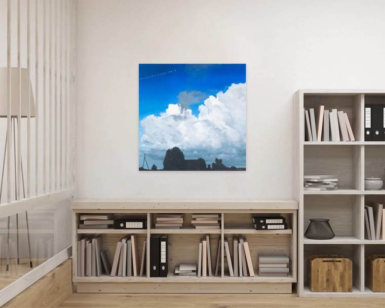 «Август. Ярославская область. Деревня Рогозинино. У нас там дача. И это абсолютный реализм! На темно-синем небе летит светящаяся цепочка... Один за одним... Зрелище феерическое, нереальное! И вдруг ты понимаешь... Спутники! Спутники Илона Маска! Это грандиозно. Ну как это не нарисовать? Вот и все».
