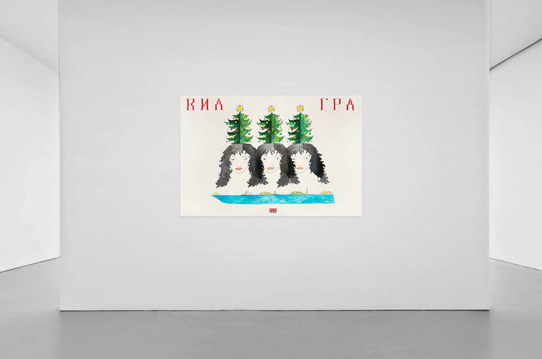 Легендарная поп-группа «ВИА Гра» предстает в работе ППСС в виде трех одинаковых женских образов. С момента создания коллектива в 2000 году состав участниц неоднократно менялся, но, неизменным оставалось одно — трио роскошных девушек в нарядах, подчеркивающих их сексуальность, которые поют о любви и страсти. Эту константу формальной структуры группы и подчеркивает дуэт ППСС. «ВИА Гра» подобно Новому году, символы которого художники поместили над головами героинь, представляет собой одну из форм стабильности для многих жителей страны. Так идея с изображением кумиров различных поколений, которая изначально принадлежала поп-культуре, превращается в метафору о состоянии современного мира и его социума. V