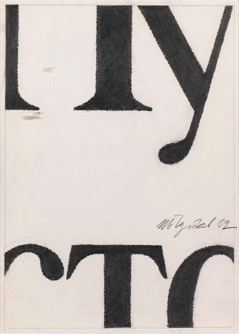 “Фрагменты газет” я начал делать еще в 1996, тогда они были не чисто шрифтовые, но с частями фото, рекламы и других визуальных элементов. Потом я заметил, как буквы составляются в слова: тогда работы очистились до текста, и первая, чисто шрифтовая работа была со словом “leere” — пустой, и следующая “leere” — пустота. Потом появилась серия рисунков с разными словами на разных языках, со словами, значимыми для меня.