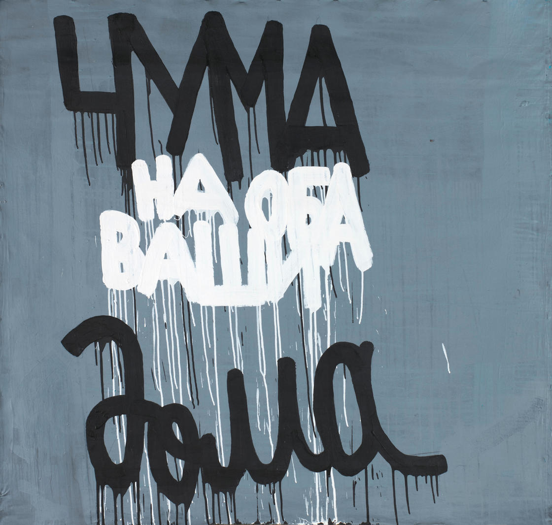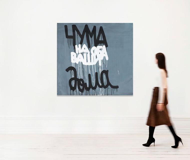 Представленное произведение вобрало в себя характерные для искусства Валерия Чтака черты: монохромная цветовая гамма, соединение слова и изображения, а также нарочитая небрежность красочных подтеков. Примечательно, что художник обращается к тексту на русском языке, тогда как в начале творческого пути он в основном работал с иностранной лексикой.