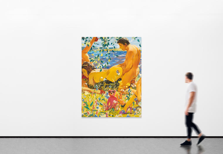 Серия «Тотальная живопись», начатая дуэтом на рубеже тысячелетий, выглядела как панорама только в буклете, на деле же это была бесконечная лента, тысячесерийное кино о кубанских капиталистических казаках, кино одновременно о них и для них. А посторонним зрителям — недостаточно страстным — оставалось лишь иронизировать и собирать фрагменты этого захватывающего путешествия героев в костюмах Адама (и Евы, добавим для гендерного равновесия) по бескрайнему живописному раю. «Какие-то его части мы выставляли в Лондоне, Нью-Йорке, но в итоге все они складываются в одну большую картину. Все высотой в два метра, шириной — в полтора. Ты просто прикладываешь новые части справа, слева, вставляешь между ними еще что-то. Таким образом, сама система очень мобильна» — объясняет функционирование рукотворного фантазма Александр Виноградов, — «Тогда я прочитал роман "Роман" Владимира Сорокина, который мне очень нравился, и какие-то его интонации невольно подспудно присутствовали в живописи».