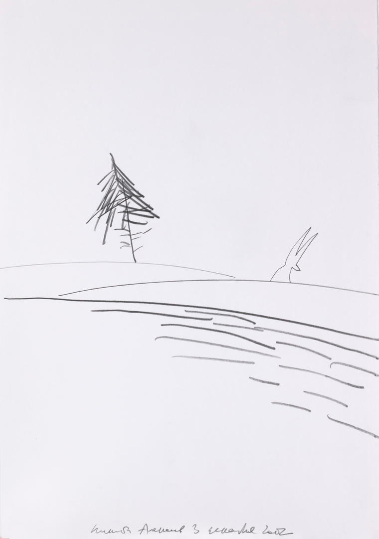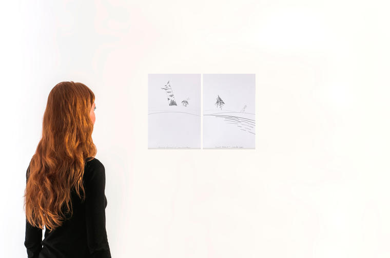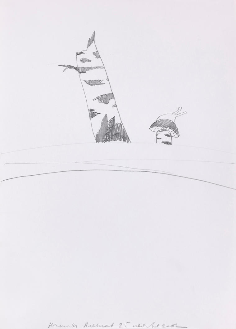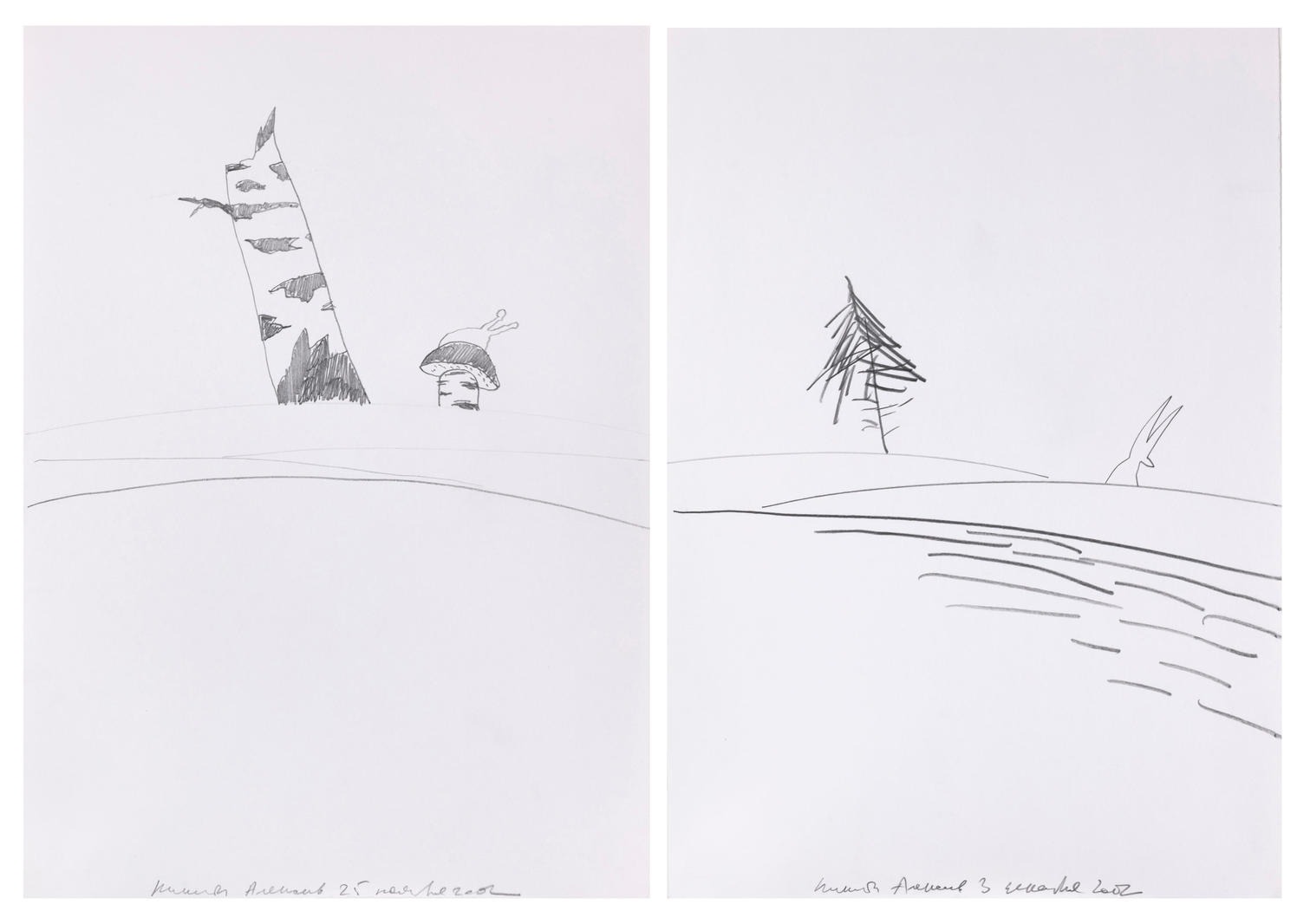 Никита Алексеев уже начиная с 1980-х создает серии и объекты в жанре «книга художника» и альбомы-комиксы, в которых текст и изображение непосредственно взаимодействуют. В представленном проекте 2000-х годов «Предсмертные рисунки» можно выделить своеобразную «картотеку» из серии листов «Русская природа», в которой Алексеев разбирает на элементы традиционные составляющие русского пейзажа. Россия у художника — это не только березки и грибы, но еще и горы, ощущение бесконечного пространства и головокружительной высоты, смена дня и ночи, снег и птицы. В графических листах серии размышления о возможности личного пути, свободного выбора, поиска экзистенциальной идентичности и собственной художественной позиции — главные для творчества Никиты Алексеева — выражены с минималистской точностью. V