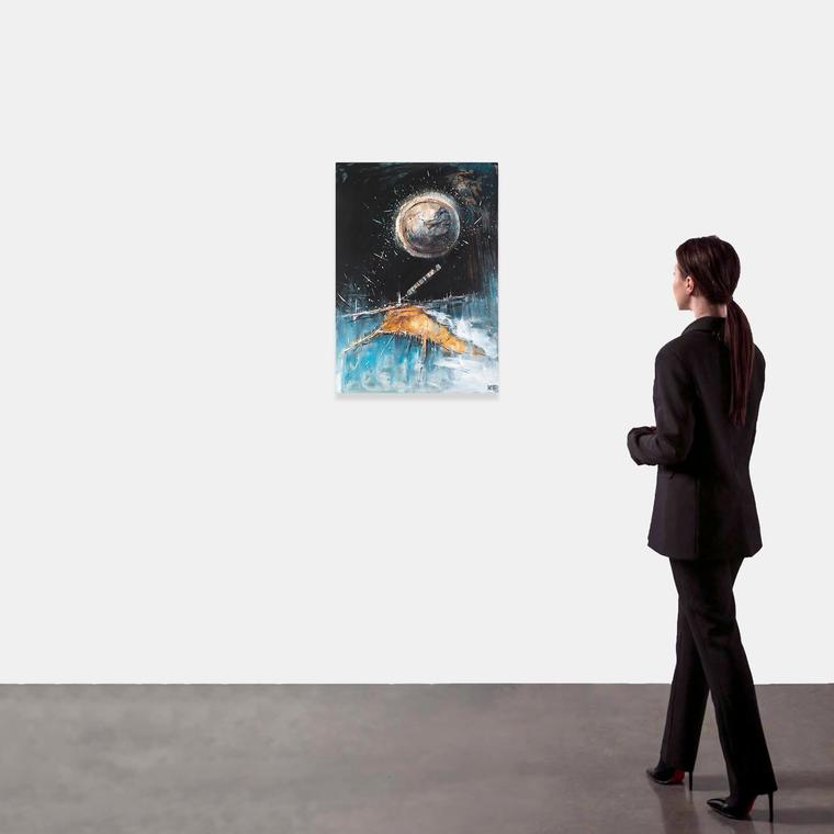 Картину из серии «Космос наш» Константин Батынков пишет в свойственной ему манере — размашистыми мазками с вкраплениями динамичных черных линий и точек. Сфера, выступающая композиционным центром работы, является излюбленным мотивом в творчестве автора. Она напоминает спутник или иное космическое тело, что перекликается с названием серии. Интерес к небу сформировался у Батынкова еще в раннем детстве, когда он посещал кружки авиа- и судомоделирования. Особое влияние на него оказал отец, который был военно-морским летчиком. Примечательно, что после окончания школы Батынков поступил в Московский институт инженеров гражданской авиации и какое-то время работал авиационным инструктором-инженером. Однако, несмотря на увлечения техническими науками, он последовал мечте стать художников.