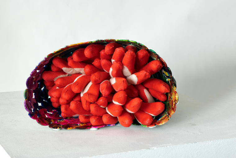 ЕлиКука: «Букеты и пакеты преследуют нас повсеместно, везде. Букеты на пакетах, букет в пакетах, пакеты вина, букеты ароматов, пакеты товаров и услуг, букет заболеваний, пакет законов… – вот что лезет в голову в первую очередь. Ещё букеты и пакеты – неотъемлемая часть праздника и горя, и практически всегда они идут в паре. А что такое букет? Букеты – это цветы и упаковка, то есть цветы и пакет. Соответственно, цветы в пакете – это и есть букет. Если с цветами художники очень много работали, это поле освоенное, но именно об этой паре, о цветах в сочетании с пакетом, не так много было сказано. И те и другие – вещи недолговечные, поэтому интересно зафиксировать эту сиюминутность, отражающую современность. Можно сказать, что мир сейчас не разложен по полочкам, а, скорее, расфасован или «распихан» по пакетам: какие-то пакеты валяются на свалке, какие-то, наоборот, в дорогих и элитных магазинах. Хотя они с одной стороны и выглядят дорого, но всё же остаются недолговечными по своей природе вещами, как и букеты, которые увядают через пару дней. Интересно, как бабушки засовывают все по пакетикам, пытаясь сохранить недолговечные предметы массового потребления, которые им кажутся чем-то дорогостоящим. В магазине на кассе кассир всегда встречает нас фразой: “Пакетик не нужен? Фишки собираете?” — как будто это то, что тебе жизненно необходимо.
