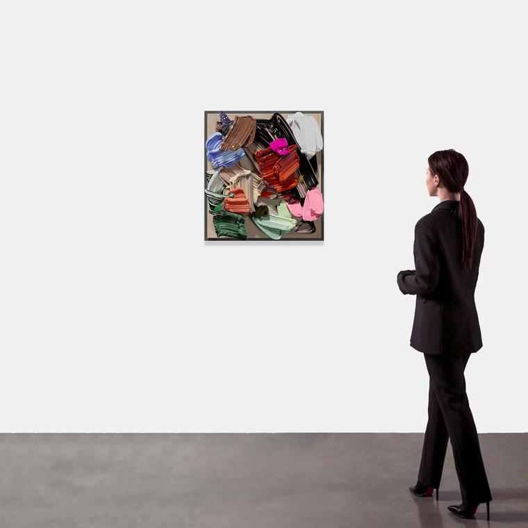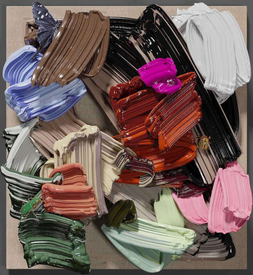 «В своей работе я продолжаю пластическое исследование красочного следа кисти как уникального авторского почерка. Мазок кисти несет в себе идею атомической модели Платона, из которой состоит любое произведение. Здесь именно автоматизм руки закладывает в работу бит информации о художнике, который прикасается к материалу».