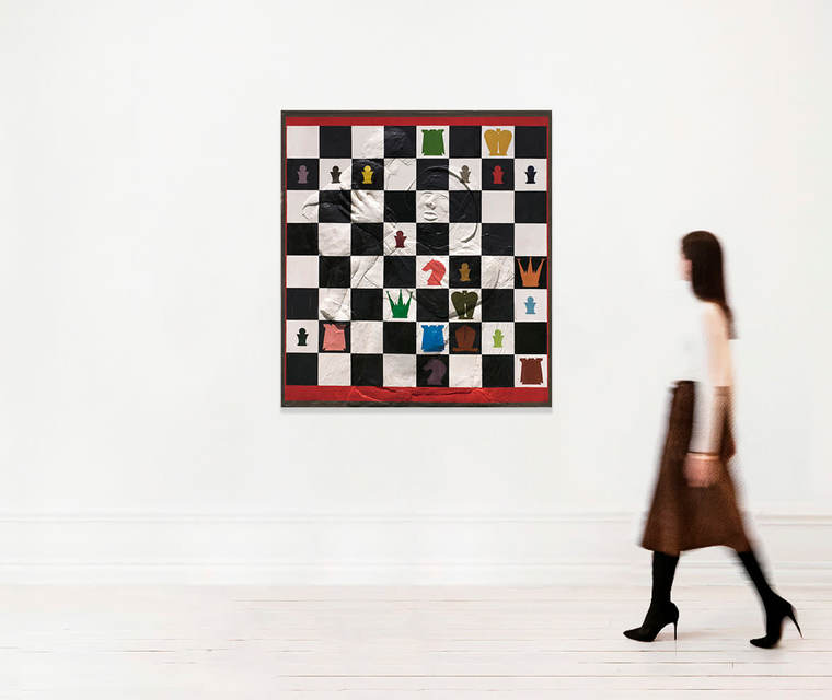 Представленная на торгах работа 1989 года входит в серию «Игра» таинственного художника Павла Фомского, за именем которого скрывается творческий тандем Павла Фоменко и Игоря Каминника. На классической шахматной доске разыгрывается партия, где каноническое противостояние «черных» и «белых» превращается в хаотическое перемещение цветных фигур. Сквозь монохромную композицию проступает едва уловимый рельефный образ улыбающегося советского солдата, поднимающего на руки девочку, — аллюзия на посвященный Великой Отечественной войне монумент «Воин освободитель», расположенный в берлинском Трептов-парк. Игорь Каминник объяснял работу «Игра» следующим образом: «Будущее виделось очень детерминированным противостоянием двух интерпретационных миров, которые будут все больше захватывать в свою психологическую реальность все больше и больше людей, коллапсируя их сознание и лишая их общих терминов описания реальности». Художники тонко уловили и запечатлели смену эпох рубежа 1980–1990-х годов — политическая игра, носившая ранее явственный характер противоборства двух систем, приобретала новые правила и смыслы.