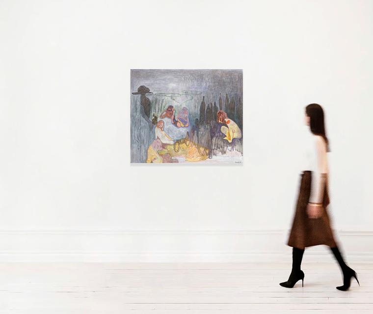 Обилие желтого цвета в работе означает застывший солнечный свет, который меняется, переходя в цвет вечернего костра. Черные оттенки несут в себе "женское начало", связь с матерью землей — цвет ночи и ее могущества.
