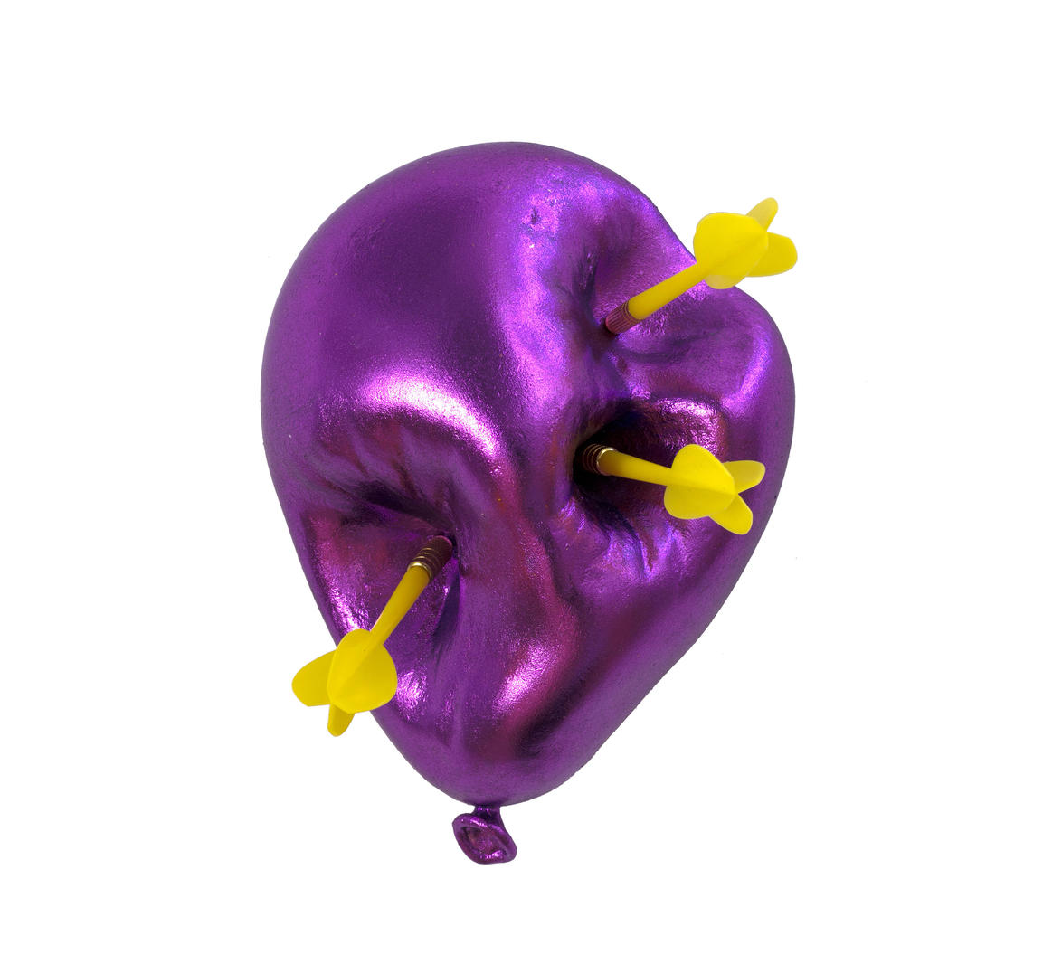 В работе «Прочность» Андрей Шкарин и Мария Ефимова создают скульптурный объект в виде воздушного шара в форме сердца. Традиционно символизирующий хрупкость, он не поддается «жестокой» стреле — не лопается и не сдувается. Художники проводят ироничную аналогию с человеком, который часто встает перед выбором: быть сильным или сдаться.