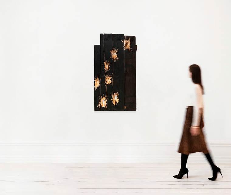 «Деревянные карты — для поиска истинного Севера. Когда я был маленький, мама часто водила меня в планетарий. Я уже ничего не помню, что там было, но Большую и Малую Медведицу я запомнил. С тех пор прошло много времени, а эти созвездия до сих пор не изменились — так же, как и щели в крыше дачного дома или шрамы от ран и порезов на теле. И вырубленные на досках “звезды” никогда не поменяют своего истинного места. Все дырки сделаны с самой топорной точностью и с максимальной четкостью показывают настоящее местоположение Севера...7».
