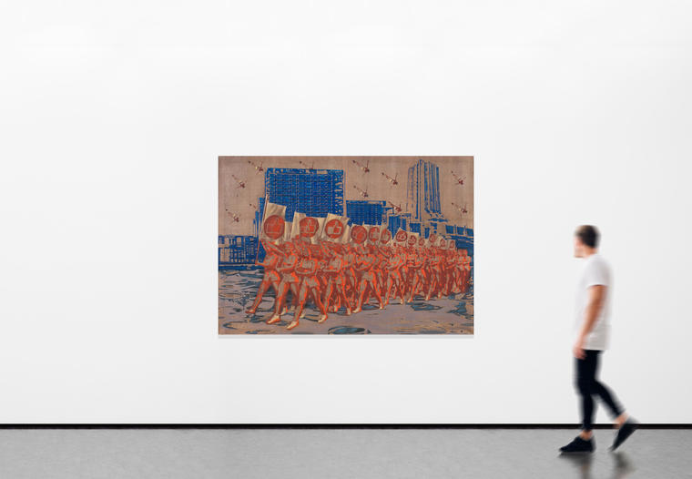 Илья Евдокимов — художник театра и кино, выпускник ГИТИСа, ученик Сергея Бархина и Натальи Нестеровой. Член Московского Союза Художников. Его работы отсылают к стилистике произведений Общества художников-станковистов, воспевавших советскую действительность. В живописи Евдокимова прослеживается влияние искусства Александра Дейнеки, Юрия Пименова и Петра Вильямса, обусловленное сходством манеры исполнения и сюжетов. Члены ОСТа представляли публике идеалистические образы «нового» человека, которые в итоге оказались лишь утопией и недостижимой целью советского общества. К этой же теме обращается и Евдокимов, дополняя романтизированные композиции элементами современной культуры, тем самым устанавливая связь между актуальным искусством и творчеством художников прошлого века. V