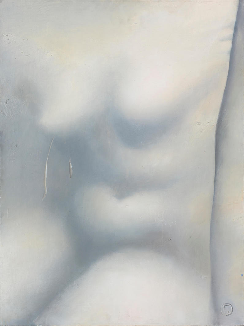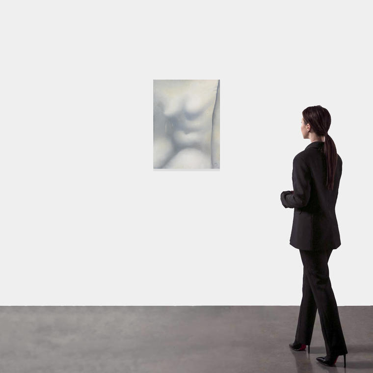 В представленной на торгах работе Ольга Гречина обращается к классической для истории искусств теме обнаженной женской натуры. Художница использует монохромную палитру и сохраняющую анонимность образа композицию, что рождает массу ассоциаций с античной мраморной скульптурой. Вместе с тем, Гречина мастерски передает ощущение телесного присутствия, мягкость и пластическую выразительность обнаженного женского тела. С помощью тонких нюансов серо-бежевых оттенков художница создает окутывающую фигуру дымку, которая скрывает излишние детали и формирует некую таинственную дистанцию между зрителем и запечатленным образом.