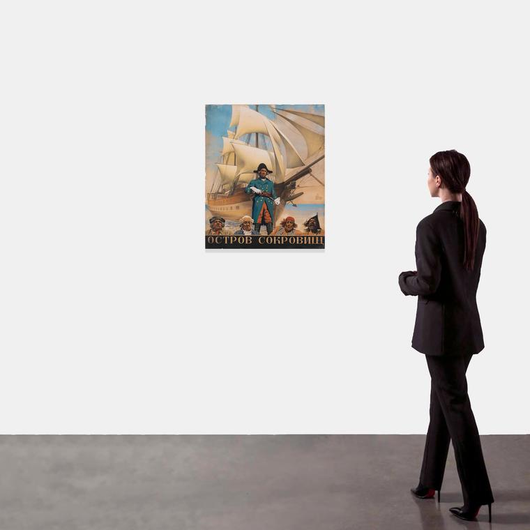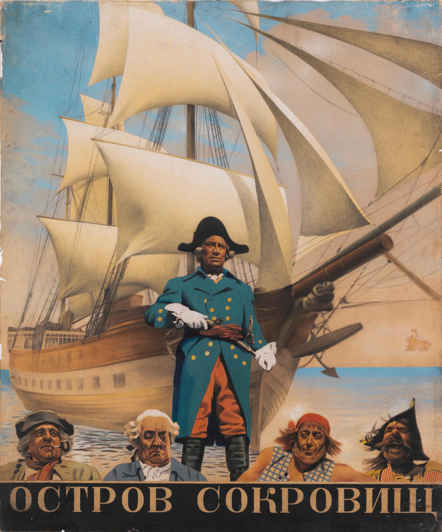 Последним по времени создания оригиналом в коллекции является макет художника Николая Хомова (1903–1973) к фильму «Остров сокровищ» киностудии «Союздетфильм» 1937 года. Хомов окончил московский Вхутеин в 1928 году и в 1930-е работал над отдельными плакатами к фильмам первого экрана. К фильму «Остров сокровищ» было издано два плаката художника, но именно плакат с этого оригинала вошел в число лучших плакатов советского кино и неоднократно публиковался в альбомных изданиях. Оригинал не подписан и не имеет штампа представителя Главлита, однако указание на авторство Н. Хомова на идентичном тиражном плакате не дает основания сомневаться в подлинности оригинала и принадлежности данному художнику.