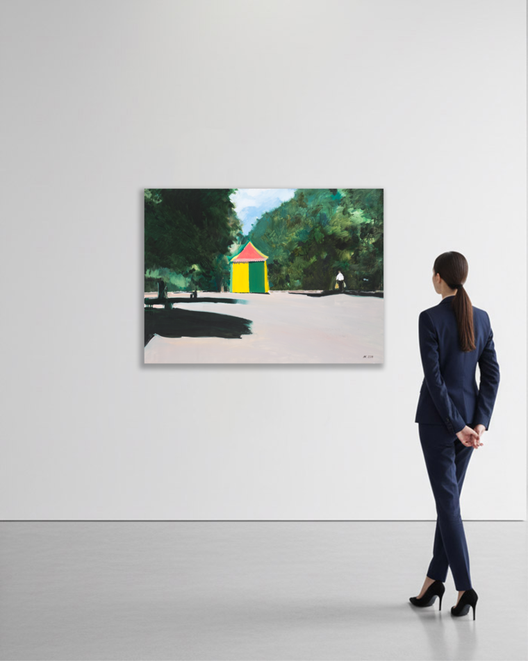 Желтый цвет часто встречается в работах Владимира Кожухаря, он перетекает из картины в картину, словно ведя собственную линию повествования: линию памяти, или как говорит художник, «линию пожелтевшей правды». Пейзаж всегда минимален, Кожухарь намеренно лишает сюжет повествовательности, сосредотачивая внимание на образах. В них ощущение светлой грусти и счастья о недалеком и далеком прошлом, проверка чувствами: «Оглядываясь назад, измеряешь неопределенное расстояние в другую сторону и всегда спрашиваешь: реально ли это?».