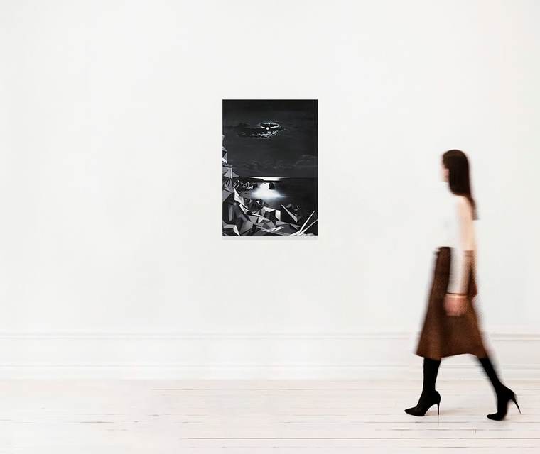 «Серия Crystal World зародилась в нулевые. В ней преобладали горные долины, острова и скалы неизвестной планеты, будто пережившей апокалипсис, но не сломившейся, а яростно пробивающейся наружу со всей силой своей природы и красоты, так похожей на земную. Работы этой серии были созданы по мотивам воспоминаний о безграничной стране, часто мелькающей в окнах поездов, в глухих лесных и холмистых местах которой пролетали зимы детства и весны юности. Редкие индустриальные сооружения на фоне северных сияний, морских закатов всегда вдохновляли и заставляли сознание дорисовывать несуществующие массивы, дополнять и без того совершенные ландшафты, которые в памяти и сегодня так ярко и звонко визуализируются».