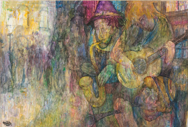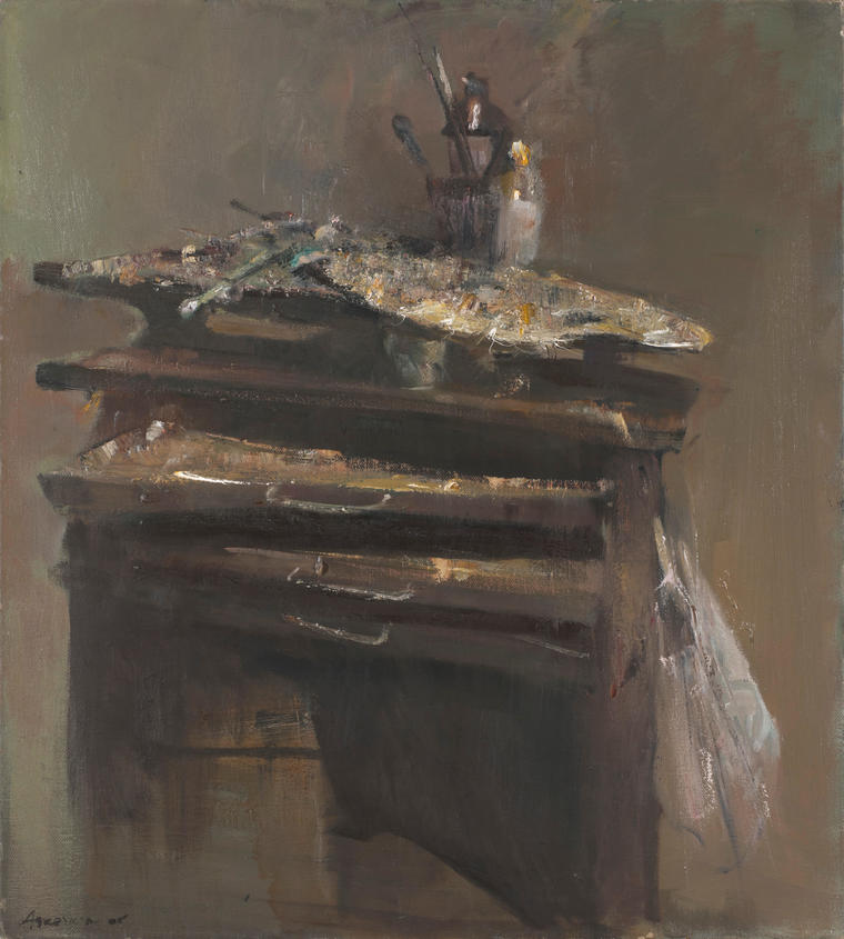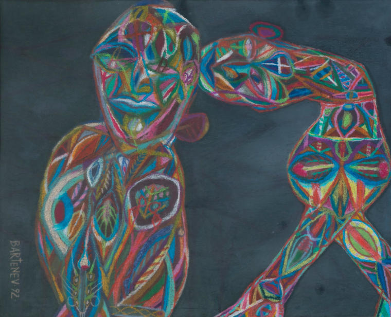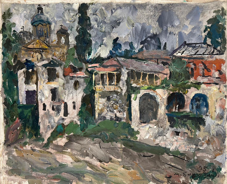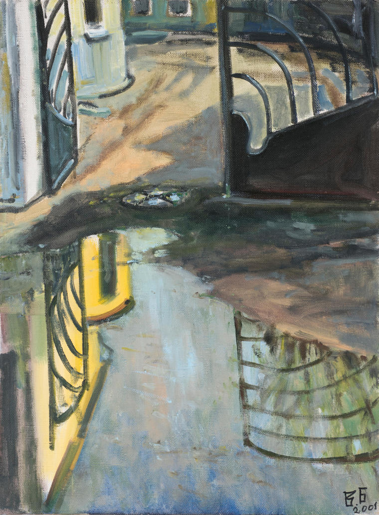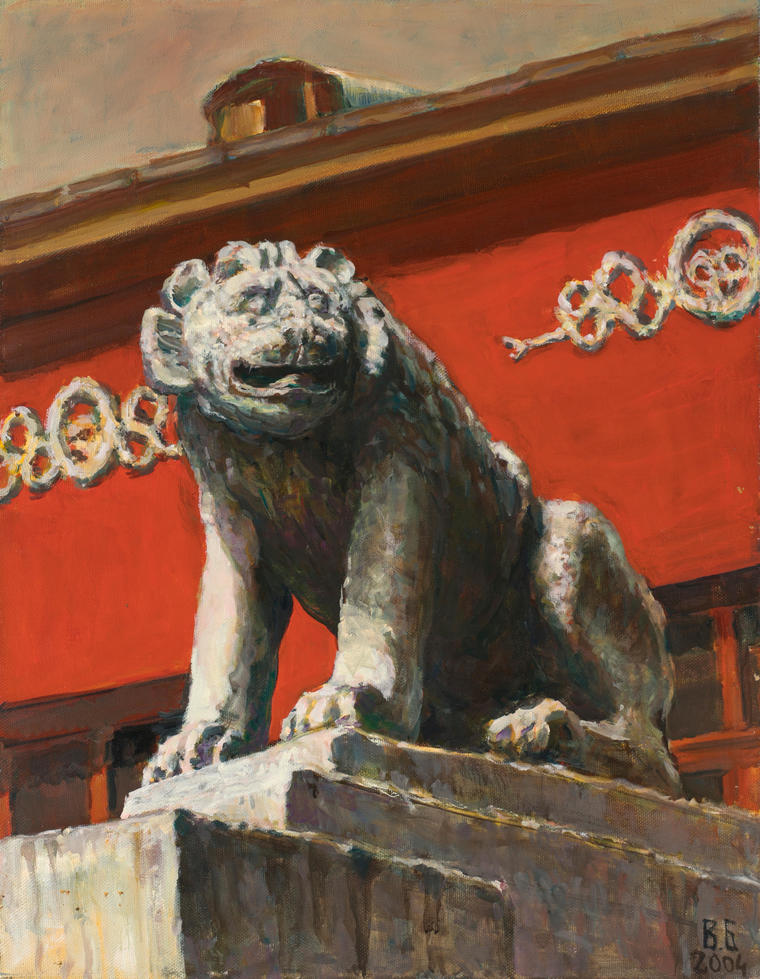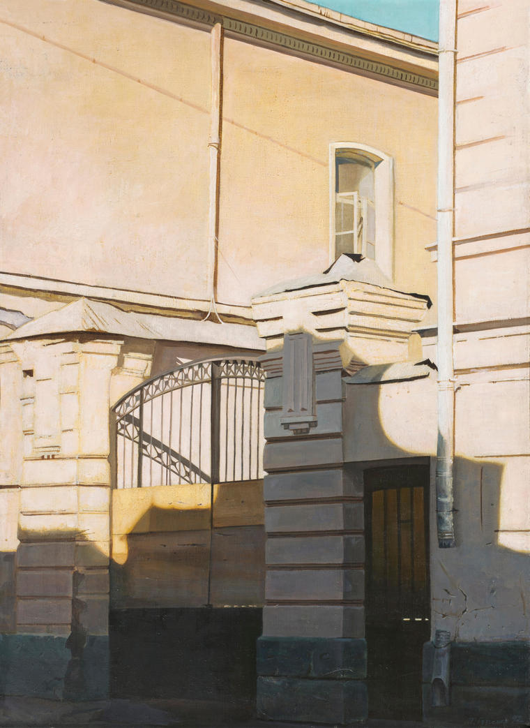 Евгений Гороховский работал над серией картин, объединенных мотивом неба, на всем протяжении первой половины нулевых годов. «Постоянные порождения называются Переменами» — это определение из древнекитайского текста «Си цы чжуань», комментария к таинственной философской Книге Перемен. Евгений Гороховский любил цитировать фразу: «Перемены — это книга, которой нельзя чуждаться». В представленной работе художник рассуждает об изменениях, которые претерпевает как человек, так и все вокруг него, через наложение двух важных для его искусства образов — неба и города. В пространстве холста Гороховского структурированность встречается с природной стихией, словно реальность — с иллюзией. Последняя будто бы прорывается через привычные виды, возвещая о скорых переменах. А перемены в древнекитайской философии ведут к пониманию сути всех вещей.
