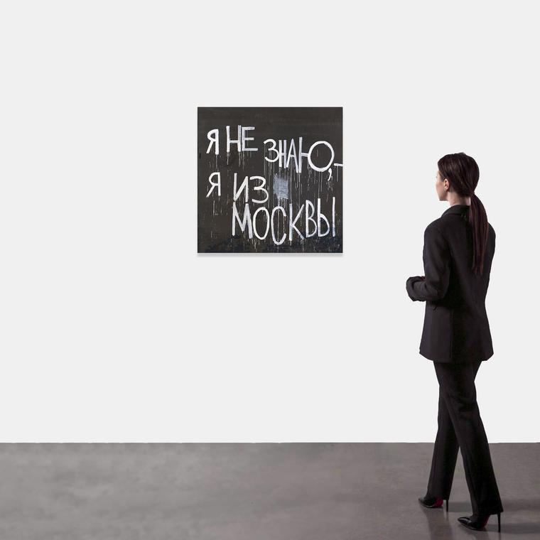 Фраза обостряется, если поместить ее на территорию, так называемой «не-Москвы». У Валерия Чтака ответ «Я не знаю, я из Москвы» возник простодушно, без подтекстов. Но это может быть воспринято как снобизм. С одной стороны, если говорить глобально, такая реакция связана с большой социально-экономической разницей между столицей и регионами, которая и формирует это разделение — «из Москвы» или «из России». С другой стороны, это обусловлено еще политической и культурной централизацией в стране, при которой — все существенно важное сконцентрировано в столице, а остальное как бы вторично. Можно сказать, художник невольно нащупал «болевую точку». И эта надпись на черном фоне, с характерными чтаковскими потеками, без желания на то самого художника, оборачивается пиратским флагом — сильным, зубастым, самодостаточным.