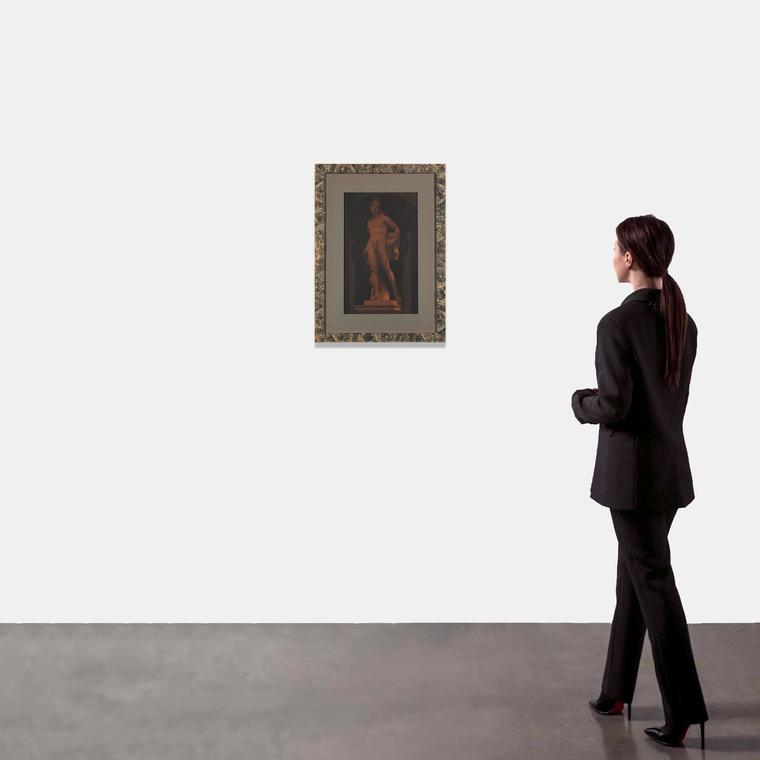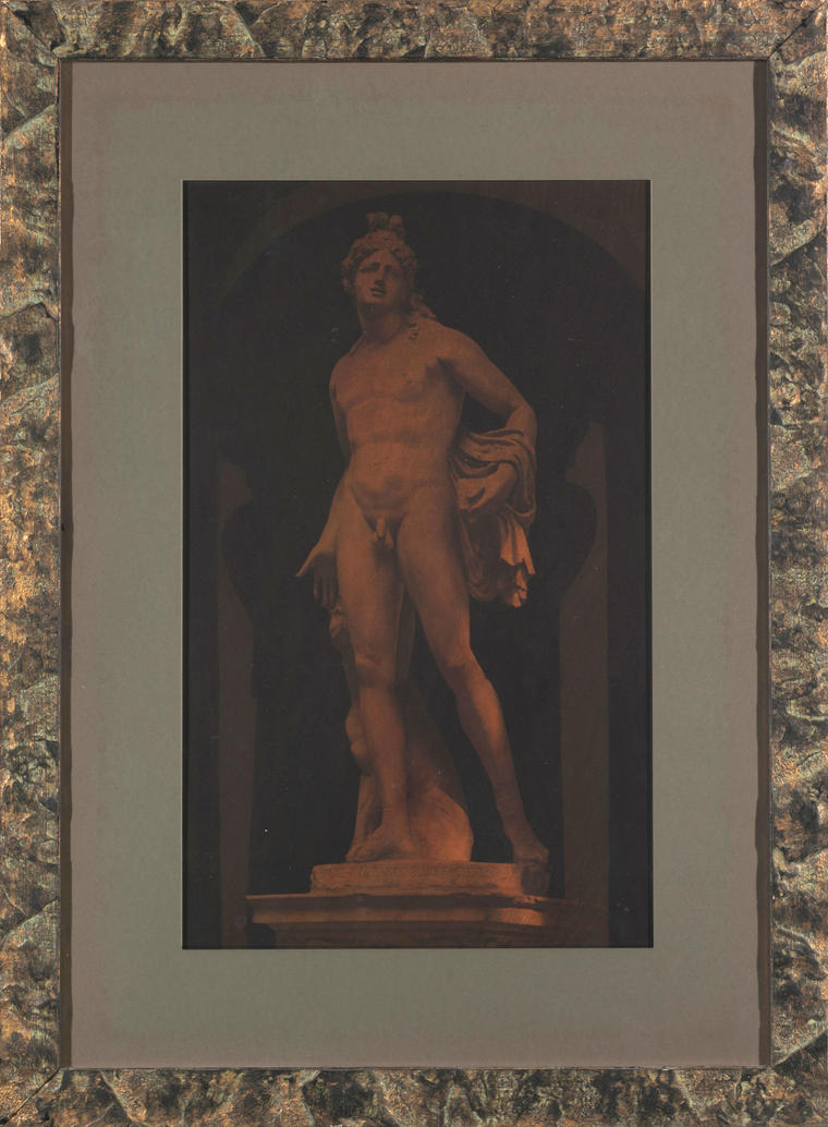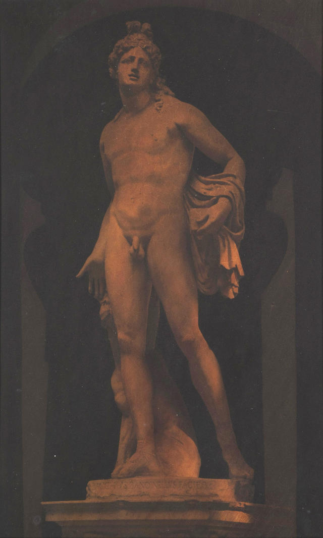 Георгий Гурьянов — легендарная фигура художественной сцены Ленинграда — Санкт-Петербурга. Художник и музыкант, актер, барабанщик рок-группы «Кино», один из организаторов клубного движения и первых рейвов, не отделявший свою жизнь от искусства, Гурьянов стал одним из создателей ленинградского неоакадемизма. В 90-х художник начинает много работать с фотографией, снимает классические скульптуры и европейские городские виды. Он вырабатывает уникальную технику ретуши, которая создает эффект графического рисунка. В отличие от лишенного глубины снимка, работы Гурьянова приобретают «глубину резкости» — детали равномерно прорабатываются штриховкой, и глаз движется циклично, считывая их каждый раз заново. На работе 1996 года запечатлена мраморная скульптура Баччо Бандинелли, расположенная в Палаццо Медичи во Флоренции. Она представляет собой скопированную с Аполлона Бельведерского фигуру Орфея — героя, которому с помощью прекрасной музыки удалось совладать с Цербером, другим персонажем скульптуры Бандинелли. Гурьянов дополняет античный сюжет эффектной ретушью, благодаря чему известный образ словно становится более кинематографичным.