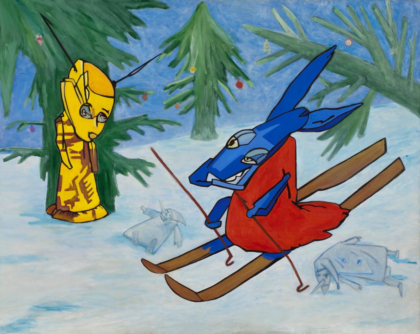 Все работы Инала Савченкова условно можно назвать кадрами из мультфильмов не только из-за специфики манеры живописи и фантастических героев, но и поскольку в их композиции заложен потенциал динамики. Как это работает, можно увидеть в коллажных мультипликациях Савченкова, которые он делал в 1980–1990-х вместе с основанной им в тот же период группой «Инженеры искусств». В своих картинах, как говорит художник, он изображает «идеальный» момент из «киноленты» в его голове, сбалансированный композиционно и насыщенный эмоционально.