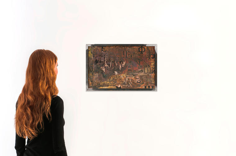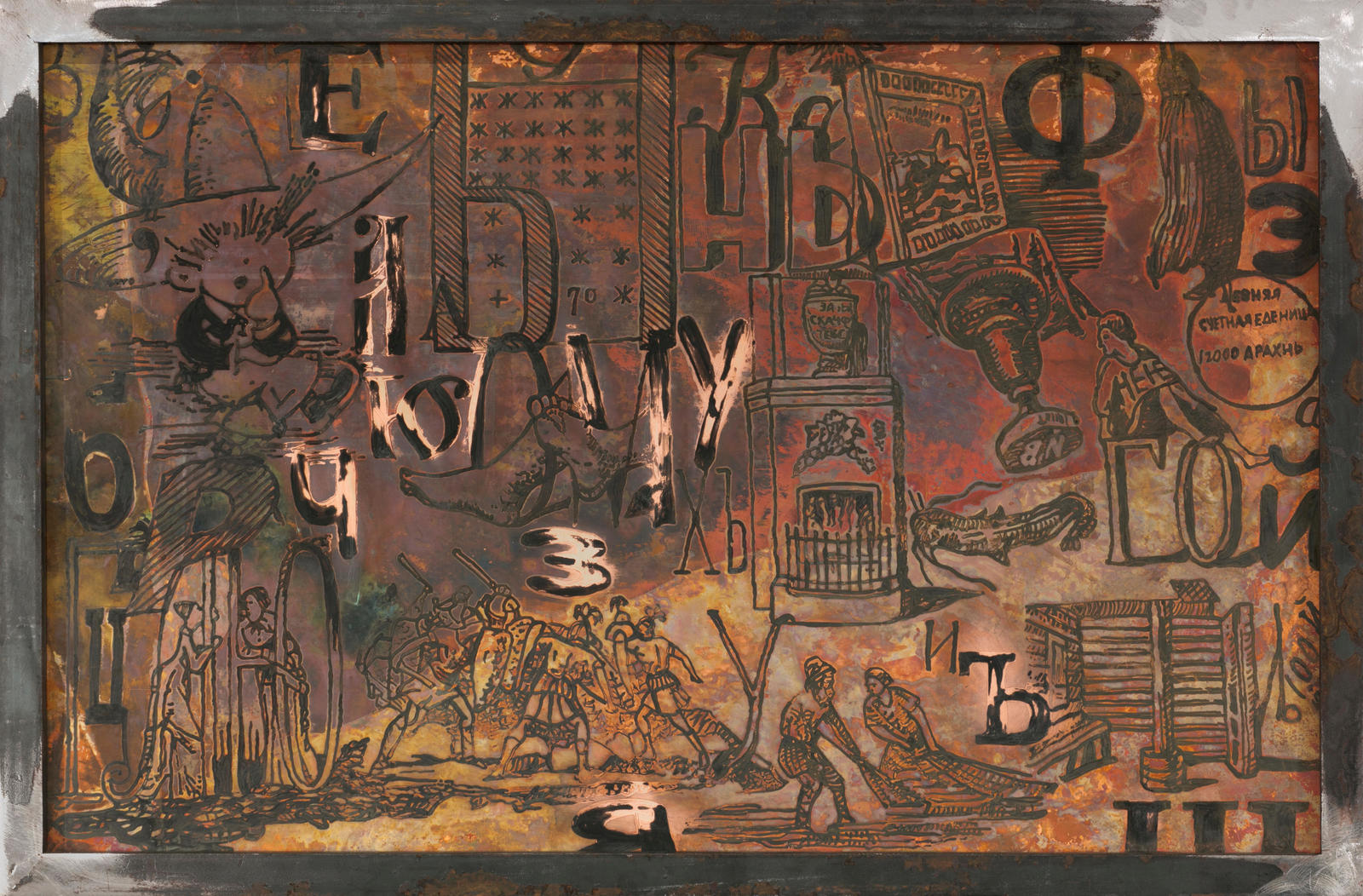 Сергей-Бугаев (Африка) с детства перерисовывал из журналов ребусы, разгадывая их. У него скопилась целая пачка с ребусами. Когда он их нашел во взрослом возрасте, то сразу сразу же интегрировал в свои работы. Первый раз «Ребусы» были показаны в Венском музее МАК. Работа имеет отношение к большой теме художника — Бессознательное. Это понятие, введенное Фрейдом и ставшее одним из ключевых для понимания не только искусства эпохи модернизма, но и постмодернизма. Для создания представленной на торгах работы использовался фольгированный текстолит — тонкий слой меди поверх определенного типа пластика. Изображение проявляется в растворе жидкого железа — как сверхзамедленная фотография. К лоту прилагается подписанный художником каталог «Ребус», изданный в Нью-Йорке галереей Пол Джадельсон Артс в 1994 году.