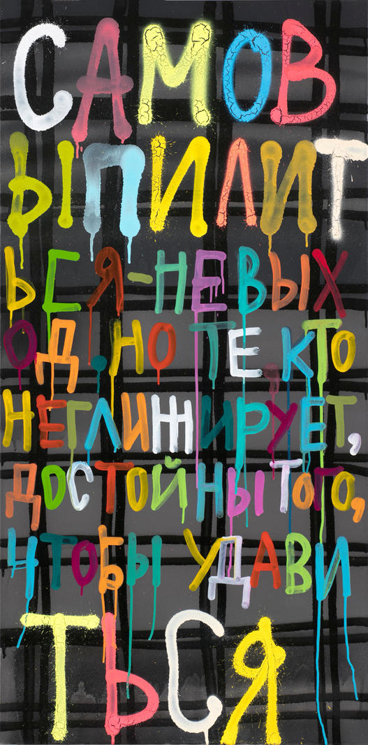 Кирилл Лебедев — культовая фигура московской граффити-сцены. Подобно фотографам-концептуалистам Бернду и Хилле Бехер, составлявшим типологии промышленных сооружений, художник, погруженный в стихию русской фразеологии, прибегает к приему лингвистического коллекционирования, составляя типологии устойчивых выражений. И получается у Кирилла Лебедева чистая поэзия.