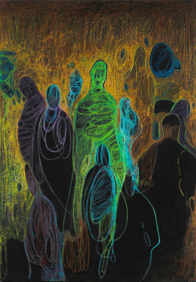 Ольга Аксенова работает с сочетанием классической иконописной школы и современного визуального языка. Художница обращается к теме фольклорной традиции различных культур, легендам, мифам, сказкам в попытке выявить постоянно изменяющуюся коллективность, откуда она берется и какие виды, контексты может приобретать. Такое обращение к архаическим формам коллективности, их образности является средством сформировать новый тип гибридной общности, которая будет способна реагировать на современную реальность трансформируясь вместе с ней. Основной метод работы выстроен на создании коммуникации через взаимопроникновение, сталкивание, насыщение разными культурными контекстами и дискурсами. Интерес к другим культурам и контекстам дает понимание того, как расширить свои взгляды на реальность, иначе посмотреть на нее и показать возможные точки схода при столкновении различных культурных парадигм. V