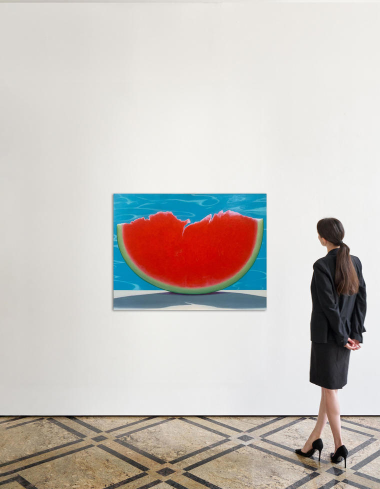 «Арбуз без косточек» из серии «Сладкая сила» — работа, в которой образы, заимствованные из массовой визуальной культуры, вступают в диалог с рефлексивным искусством, основанным на анализе, иронии и парадоксе. За внешней легкостью и мягким абсурдом композиции скрываются метафоры силы, размышления о роли искусства и природе художественного вкуса. Работа поднимает вопрос о границах влияния массовой культуры: утратит ли искусство свою критическую силу или найдёт способ сохранять дистанцию — с помощью иронии, парадокса и метафоры?