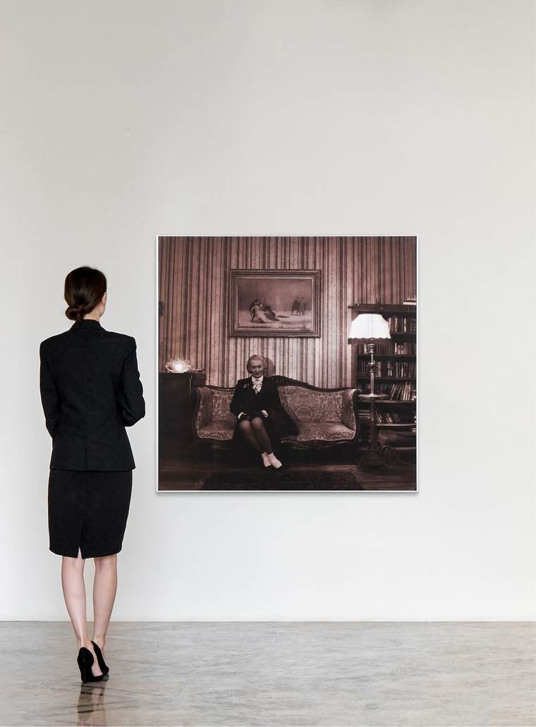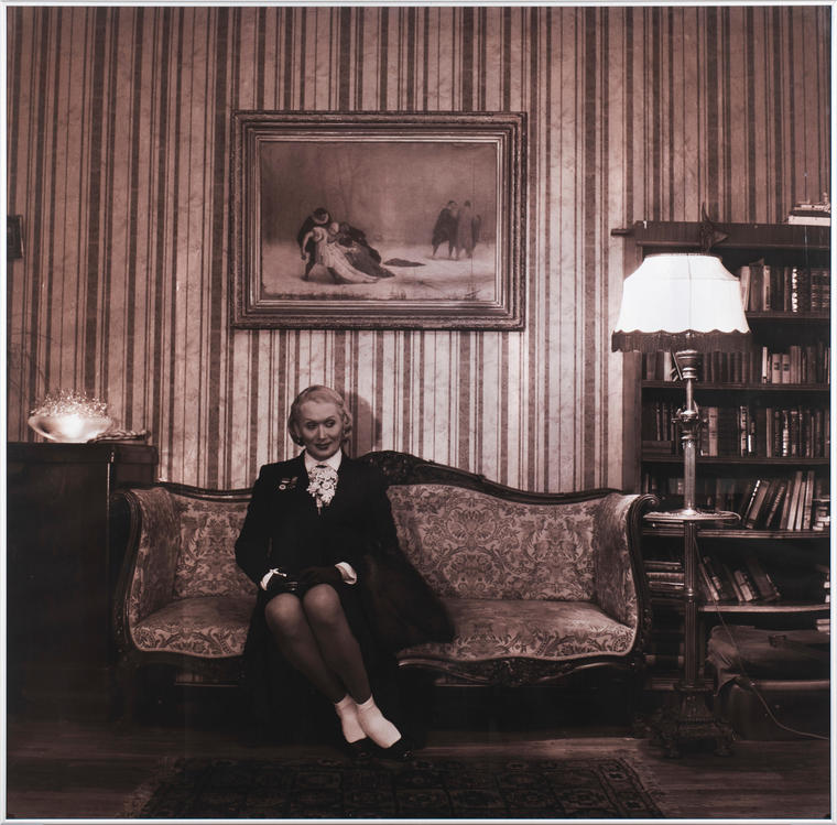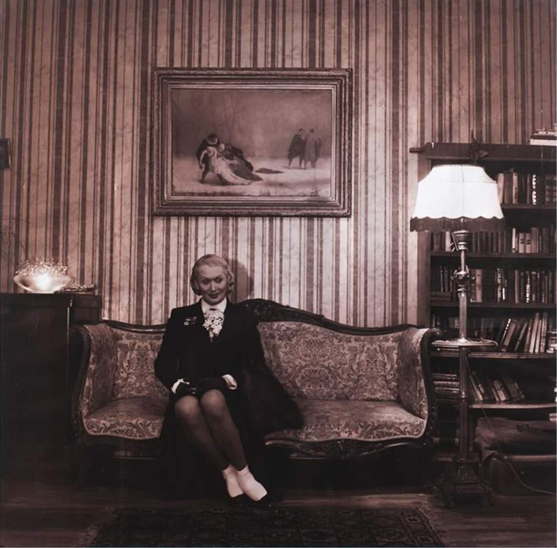 На снимке запечатлена легендарная советская актриса Лидия Орлова в момент задумчивого ожидания, создавая интимный и почти документальный портрет. Через тонкую игру света, композицию и экспрессию лица Мамышев-Монро передаёт атмосферу ленинградских гастролей 1936 года, а также личное пространство и внутренние размышления актрисы, превращая бытовую сцену в художественно значимый образ.