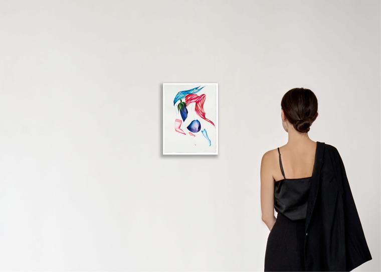 Графика Айдан переосмысляет традиционное восточное искусство: палитра, внимание к орнаменту и силуэту, точность линий — в этом видно её увлечение миниатюрой. Работа написана в период карантина: «В замедлении темпа есть и хорошая сторона. Ты выпадаешь из бешеного ритма встреч, тусовок, выставок, вдруг высвобождается время подумать, заняться тем, до чего в суете не доходили руки. Очень продуктивный период», — говорит художница.