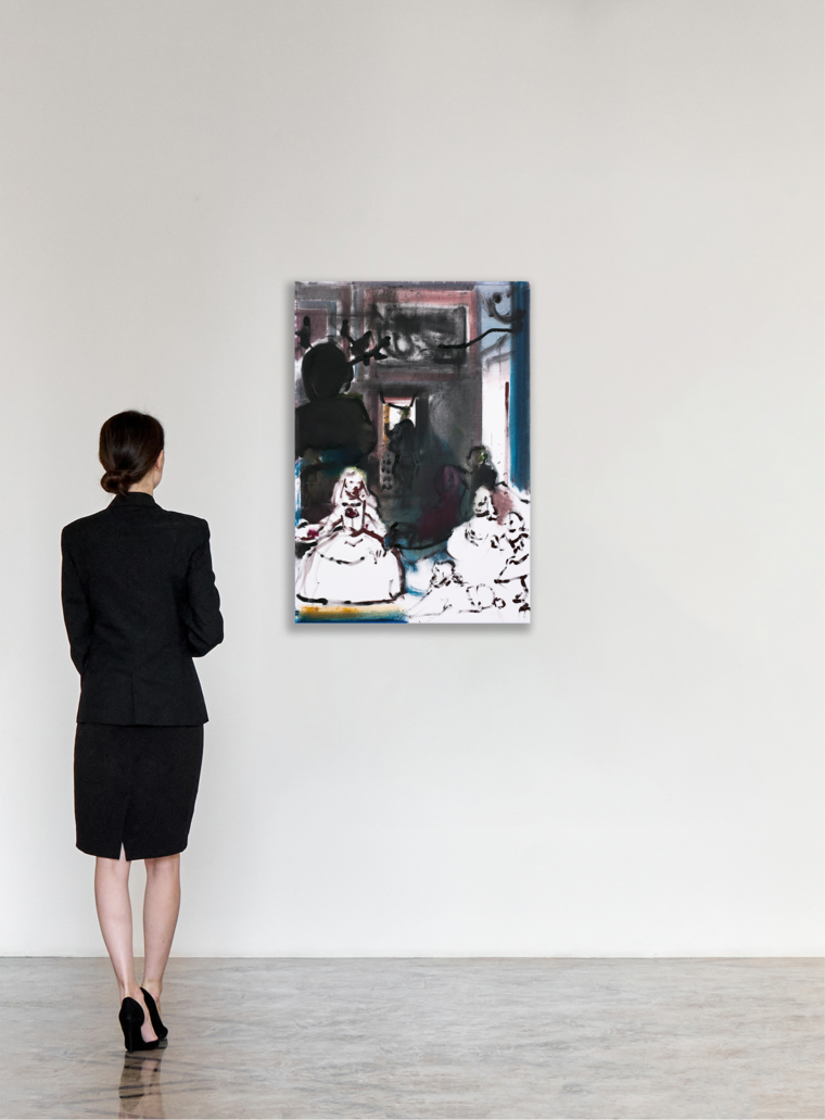 Веласкес в своих «Менинах» разместил на дальней стене своей мастерской две большие картины фламандских художников Питера Пауля Рубенса «Афина и Арахна» и Якоба Йорданса «Аполлон и Марсий», которые никогда там не висели. Эти картины написаны на один и тот же сюжет — земные творцы бросают вызов богам и проигрывают состязание. Веласкес намекает, что его картина — тоже вызов. Вызов гения Веласкеса и его «менин» принял Леонид Цхэ, написав свою версию работы. Инфантой Маргаритой стала дочь художника.