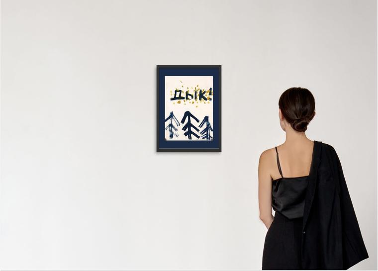 «Дык!» 1987 года — это посыл к «Митькам», иллюстрация знаменитого выражения «Дык, елы-палы!» из словаря движения. Словарь состоял из ряда междометий, которыми можно выразить все — на представленной работе проиллюстрировано любимое митьковское выражение. Помимо этого в работе Сотников обращается к важному для своего творчества и иконографии «Новых художников» образу ели. Это, с одной стороны, абстрактная форма, образованная простыми геометрическими фигурами или линиями, а с другой стороны — устойчивый фольклорный образ, который является простым олицетворением праздника и веселья. Таким образом работа является ярким примером того уникального положения, которое занимал Сотников на ленинградской андеграундной сцене, и становится ярким выражением карнавальной и безумной атмосферы тех лет «перемен».