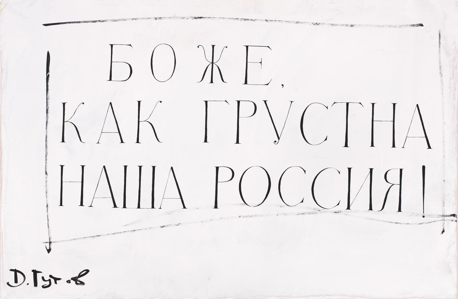 Работа «Боже, как грустна наша Россия!» относится к позднему периоду, который отличает эксперимент с включением текстовых и каллиграфических элементов в живопись. Приведенная в работе фраза принадлежит Александру Сергеевичу Пушкину, ее упоминает в своих письмах Николай Васильевич Гоголь — именно такими словами отозвался Пушкин, впервые услышав в прочтении самого автора первые главы «Мертвых душ».