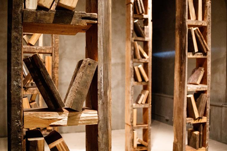 Подобно тому как старый столяр Антонио обнаружил в своем полене живого мальчика, в этом проекте художник угадывает в сколе дерева образ книги, которую невозможно открыть и пролистать. Древо познания предстает раздробленным на несколько ветхих стеллажей с навечно закрытыми книгами. Человек является невольным наследником универсального архива, что вменяет ему сущностную обязанность познавать и в то же время делает жертвой постоянного осознания непознаваемости бытия. Приняв отчужденность окружающей действительности, человечество переживает оторванность от созданных им знаковых систем. Когда весь мир становится сплошным текстом, материальные источники знания не востребованы, теряют собственное содержание. Перед нами заброшенный склад познавательного молчания, вновь вернувшийся к собственной сущности — лесной чаще, непроходимой и неясной загадке для человеческого рассудка.V