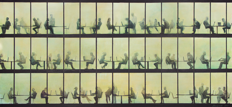 Вид на землю с высокой точки — один из самых любимых художником приемов композиционного построения пейзажа: «Раньше я старался подняться на гору или высокую крышу, чтобы увидеть пейзаж сверху. Потом открыл для себя полеты на вертолете — и меня поразило то, как природа и ландшафт предстают вдруг почти что геометрической абстракцией. Мне нравится этот эффект, эти проявляющиеся четкие формы и ритмы. Но в моих картинах пейзаж все равно остается пейзажем — не теряет связь с натурой».