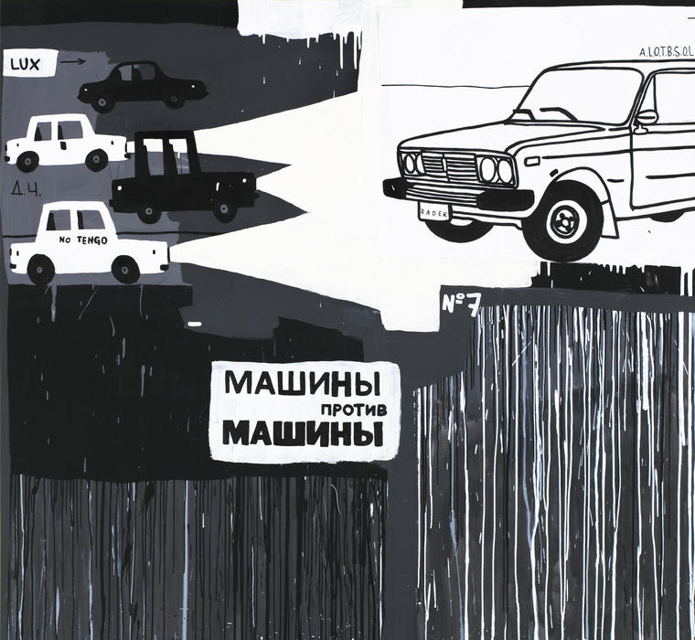 Футбольное поле, иногда с игроками, иногда пустое, — характерный сюжет картин Гоги Тотибадзе. Это ровное геометрически правильное зеленое пространство в окружении домов, высаженных в ряд деревьев или горных склонов, выступает у художника как некий символ устойчивости жизни: «Время меняется, все меняется, но люди по-прежнему играют в любительский футбол». Это и воспоминания о детско-юношеских годах, проведенных в Москве на знаменитой своими художественными мастерскими улице Верхняя Масловка, где по вечерам все собирались и играли в футбол. Рядом располагался стадион «Динамо», футбольный матч на котором в конце 1980-х стал темой выпускной дипломной работы Гоги Тотибадзе в Московском академическом художественном училище памяти 1905 года. Представленная картина «Футбол 21:00» — слегка видоизмененный художником, документальный в своей основе вид на школьное футбольное поле из окна его дома в Строгине. Высокая точка обзора открывает панораму с высоким вечерним небом, серыми прямоугольниками жилых домов и вытянутым светло-зеленым полем по центру.