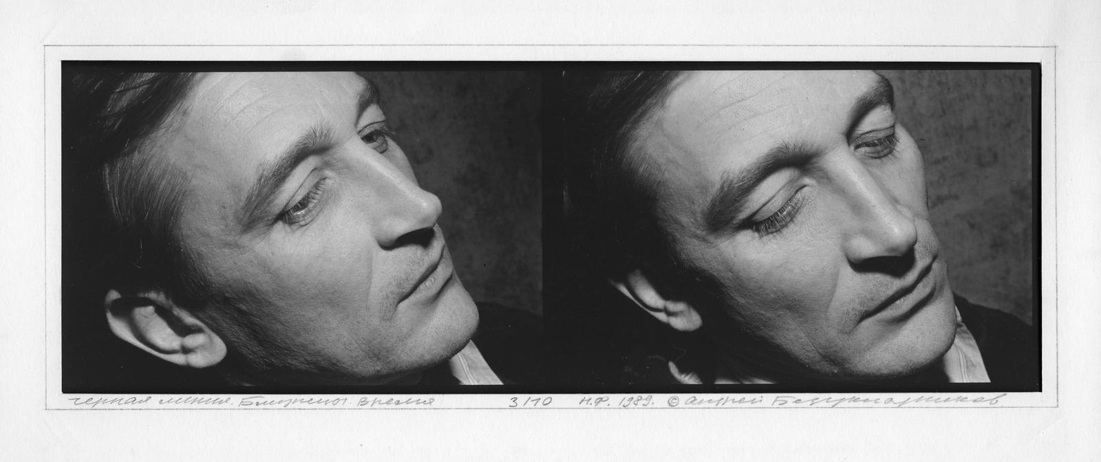 Все фотографии, тщательно отбираемые Андреем Безукладниковым для серии «Черная линия. Близнецы. Время», тем или иным образом отмечают те тектонические сдвиги, которые происходили в культурном пространстве во время перестройки. И сам способ бытования художественного сообщества, каналы передачи и распространения искусства, свидетелем которых он был, — один из важнейших моментов.