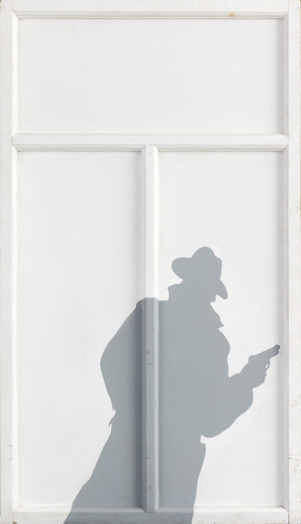Именно такую концептуалистскую работу мы видим и в произведении «Окно XLI». Перед нами ровное ярко-белое, словно залитое светом, пространство окна-холста, на котором проступает четкий темный силуэт. Крадущийся человек с пистолетом, в пальто и шляпе отсылает нас к героям нуарных фильмов — гангстерам, детективам, шпионам. Тень на стене — классическая сцена тревожного черно-белого триллера. Сама картина напоминает киноафишу, например, к величайшему фильму ХХ века «Третий человек» с Орсоном Уэллсом — великолепный нуар, демонстрирующий саму суть жанра: аморальность как зыбкость этики в контексте обстоятельств. В работах Ивана Чуйкова можно встретить фрагменты из самых разных произведений искусства и визуальной культуры в целом — это разговор о том, что все они равны перед историей и все равнозначно как художественные формы заслуживают внимание.