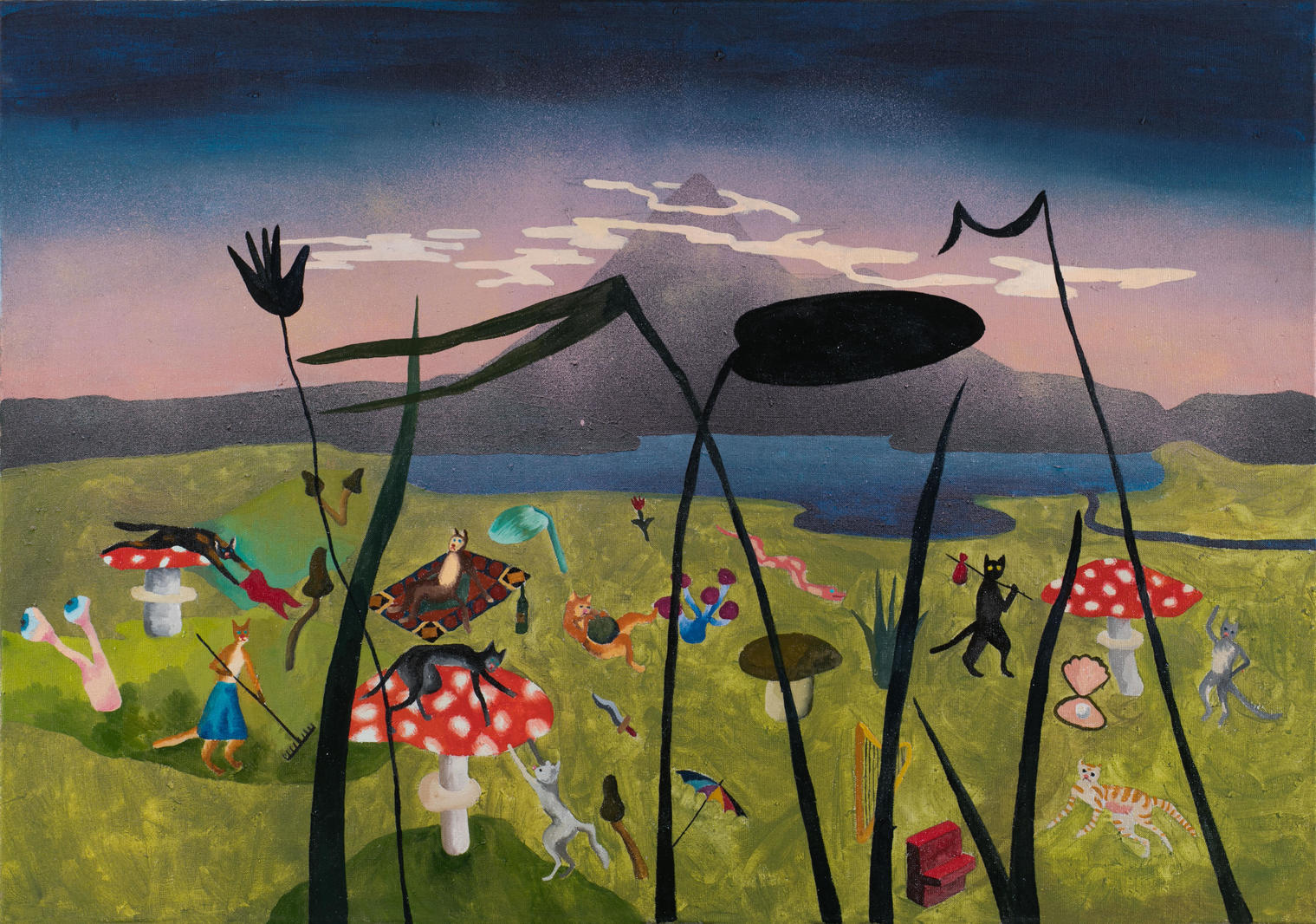 Работа повествует о фантастическом мире антропоморфных кошек и отсылает к картине Питера Брейгеля «Страна лентяев» (1567). Персонажи в обоих произведениях праздно и ленно проводят время, а смысл можно трактовать как критику общества потребления.