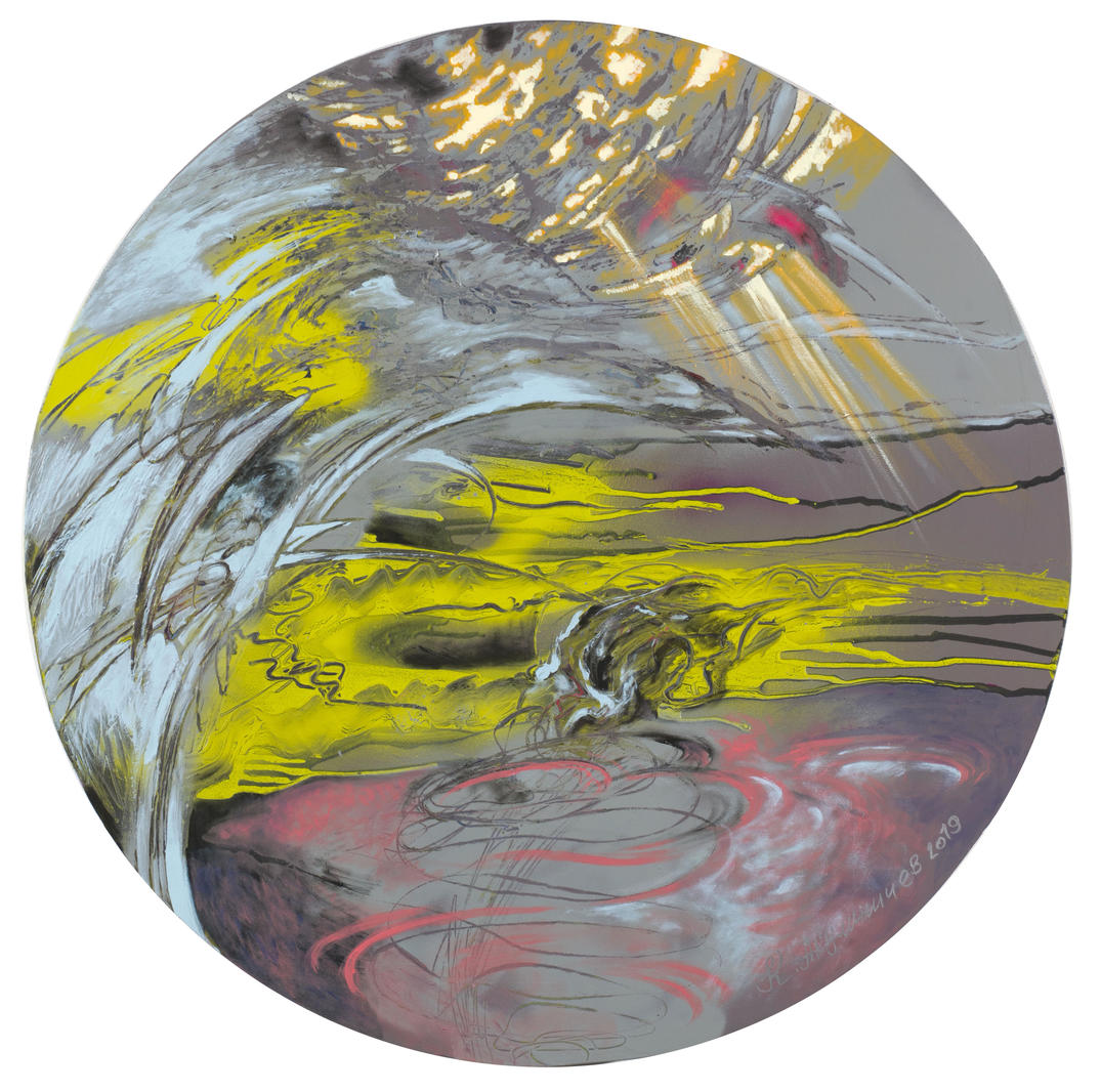 Художник Кирилл Акулиничев родился в России, «в степях донских, у моря». Его источник вдохновения неразрывно связан с детскими воспоминаниями. В детстве на даче, на Азовском море, он зарывался в песок и наблюдал за горизонтом, проявляющимся на уровне воды. Не знающее сильных штормов море, плоская степь, песчаный пляж, изредка проплывающая баржа… В наблюдениях проходили часы. Эти воспоминания художник сохранил до зрелых лет и отразил в картинах, изображающих плоскостные и объемные формы, переплетенные между собой. Так он создавал свой «Атлас», наблюдая за облаками, за вечными природными явлениями. «Мы были всегда!» — слышится в шуме ветра, в медленном течении воды, восходящем солнце. Природные формы преобразовались в проекте «Облачный атлас» во фракталы, застывшие красками на поверхности холста.