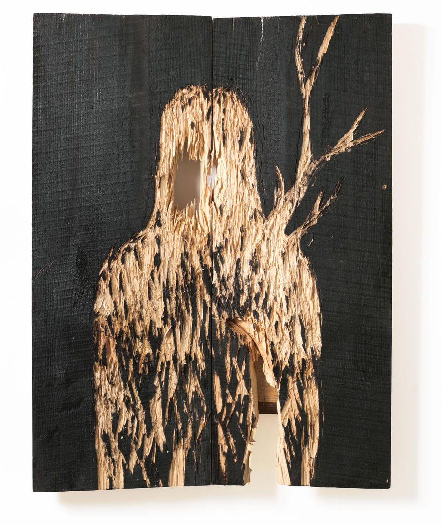 Продолжая исследования топорного искусства и уходя в протоживопись, в серии «Деревянные портреты» я обращаюсь к портрету кого-либо или чего либо — дерева, соседа, любовницы, отца или самого себя. Представленный вырубленный топором портрет напоминает некий силуэт, отброшенный весенним солнцем на сырые доски старого дачного сарая, и, словно, улыбаясь себе самому деревянной улыбкой, он наблюдает за происходящим.