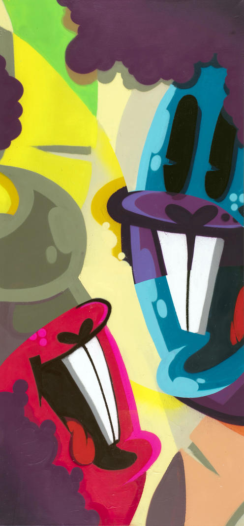 «Многие так называемые "стрит-арт" работы на данный момент сделаны с помощью современных технологий и материалов и теряют свою именно "уличность" так как используются трафареты, скотч и разные приспособления. Когда граффити зародилось, выставлялись оно, показывалось зрителю и покупателю в "чистом виде" — сама по себе спрей-линия или точка уникальна и неповторима, в этом и есть уличная романтика. В данной работе я использовал только баллон и свои руки, нарисовал то, что я рисую на улице, и так, как на улице. На картине есть две детали, выполненные по скотчу, и они явно выделяются и смотрятся немного искусственно.