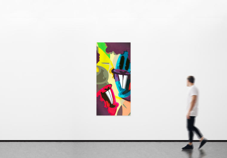 Мой заяц родился больше двадцати лет назад. На заре уличного искусства люди просто брали образ и тиражировали его по всему городу, по всему миру. Как и Бэнкси начинал. Я был одним из первых, кто создал свой образ и тиражировал его постоянно — это был просто зайчик, который несет положительные эмоции. Но на данный момент он сильно трансформировался. Я понял, что зайчик — это такая форма, которую можно как манекен одевать. Поэтому на моих холстах он теперь каждый раз разный, но всегда отчаянно веселый».