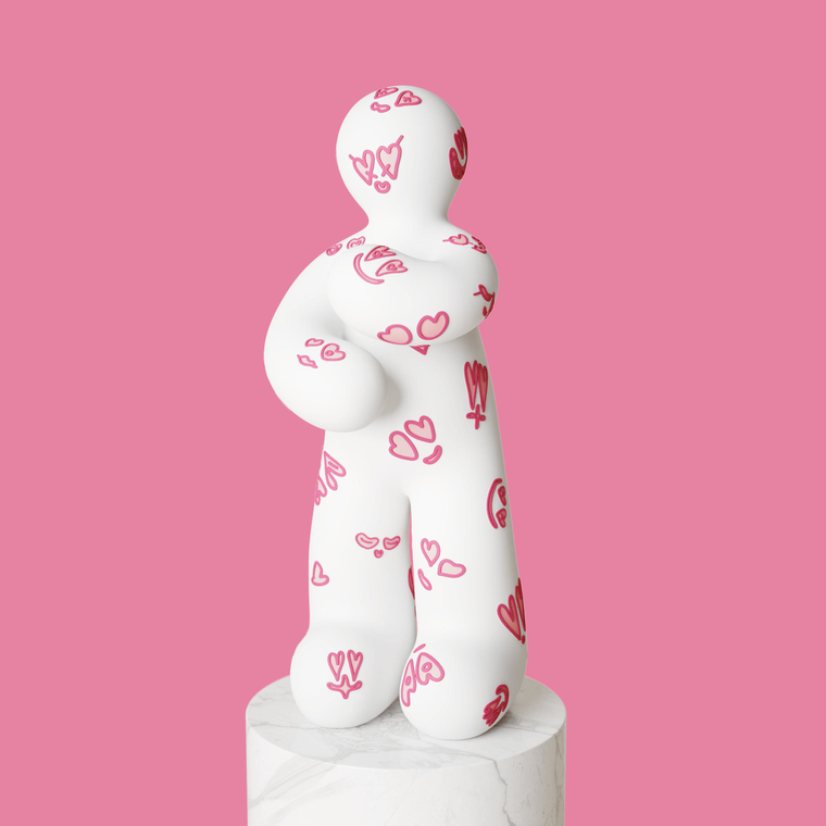 В новом обитателе вселенной Yoomoota Тараса Желтышева воплотилось чувство чистой любви — заветная мечта многих людей. Белый персонаж, усеянный влюбленными взглядами и поцелуями, скрывает в себе сразу несколько важных метафор. Во-первых, сам белый цвет, как и любовь, сложно разложить на понятную формулу. С одной стороны, он является суммой всех цветов, с другой — всегда предстает в разных оттенках. Во-вторых, посланник чистой любви обнимает себя и как бы подсказывает: мы сможем дарить счастье другим лишь тогда, когда полюбим самих себя. В-третьих, этот персонаж, обладая телепатическими способностями, способен одаривать влюбленными взглядами окружающих и заставлять их чувствовать себя любимыми и значимыми. V