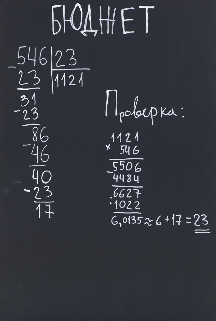 Работа «Бюджет» была впервые показана в 2011 году на совместной выставке художников «Открытие 1 февраля». В проекте была проблематизирована необъяснимость технического процесса производства. Одной из основных идей выставки стала роль ошибки в научном прогрессе и возможность использования потенциала механизмов без потерь энергии. Таким образом, математические расчеты «столбиком» и их проверка на картине «Бюджет» становятся метафорой ручного труда и воспоминанием о неавтоматизированном прошлом в эпоху электронно-вычислительной техники. V