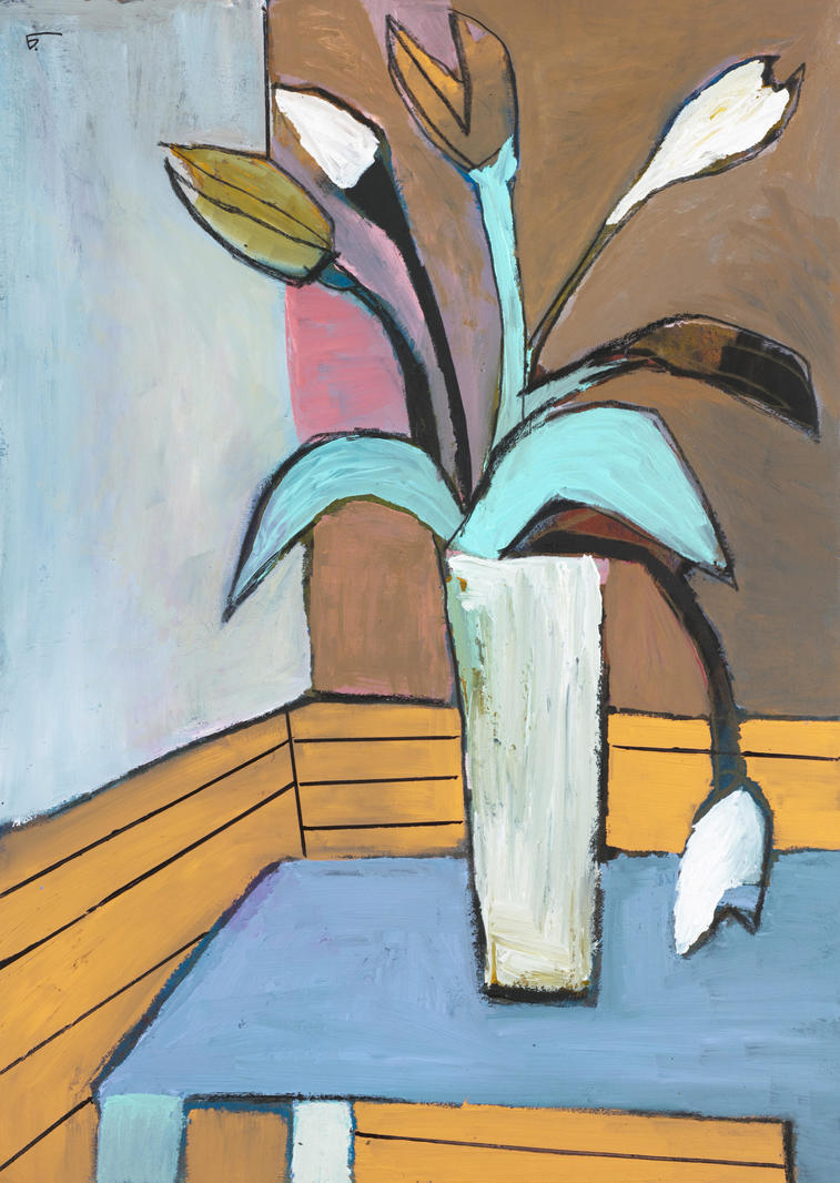 В этом смысле работа как бы отсылает к традиции аллегорического натюрморта, получившего распространение в нидерландской живописи. Именно тогда появляются первые станковые натюрморты небольшого размера, в которых изображения цветов всегда аллегоричны и читаются с помощью языка символов. Сам по себе тюльпан, получивший распространение как образ тоже в нидерландской живописи XVII века, более всего связан с весной, обновлением, но имеет и множество других, более глубоких трактовок.