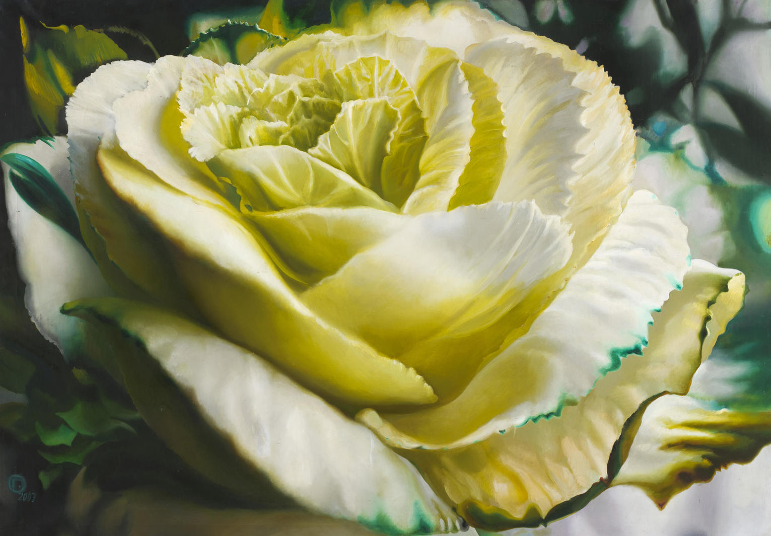 В представленной картине «Капуста» авторская техника работы со светом соединяется с гиперреалистическим вниманием к деталям. Однако холст отличается от большинства работ Ольги Гречиной, обычно насыщенных образами. Здесь художница отходит от привычного «калейдоскопа» из предметов и ярких цветов и создает медитативную композицию, в которой запечатлен процесс созерцания, полного погружения в природу.