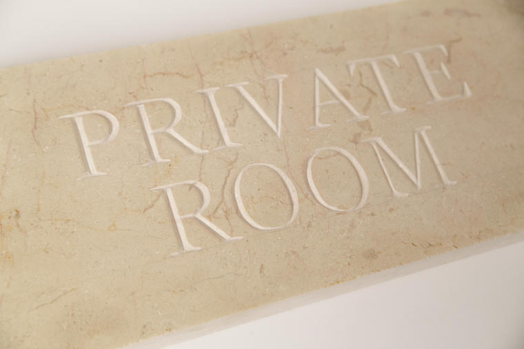 Мраморная табличка Private Room — центральная работа в одноименном проекте «Private Room», показанная на выставке «Современник. Начало» в Московском музее современного искусства в мае 2021 года. Этот проект объединил работы из нескольких проектов («Окаменелости», «Вещи, которые имеют вес», «Work-in-progress» и другие), которые создавались в течении последних трех лет и представляют собой каменный архив современности — вручную вырезанные из мрамора следы человеческого присутствия.